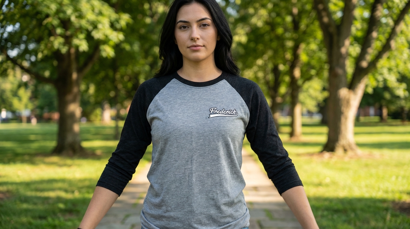 The Frederick Flag Edition raglan tee blends timeless baseball style with unmistakable Maryland pride.